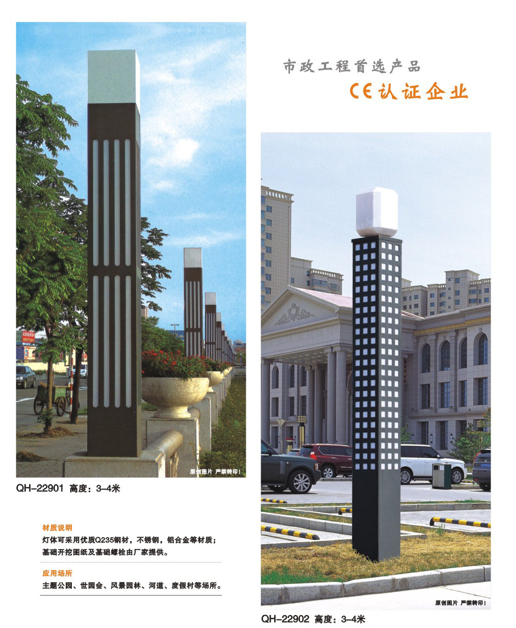 用途:景觀燈適用市政工程、園林亮化工程和公園、開發區、別墅區、廣場等戶外路燈照明工程